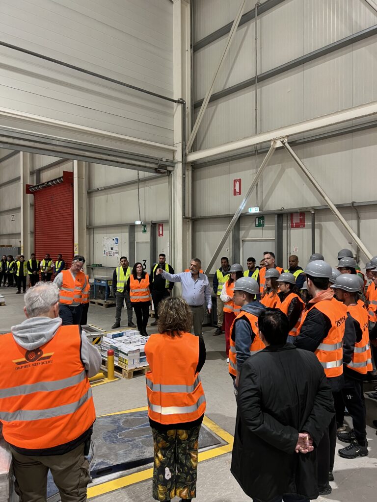 Ακολούθησε η περιήγηση των μαθητών και των εκπαιδευτικών τους, στους χώρους της αποθήκης, με τα κατάλληλα μέσα ασφάλειας, καθώς τους παραδόθηκαν γιλέκα και προστατευτικά κράνη.