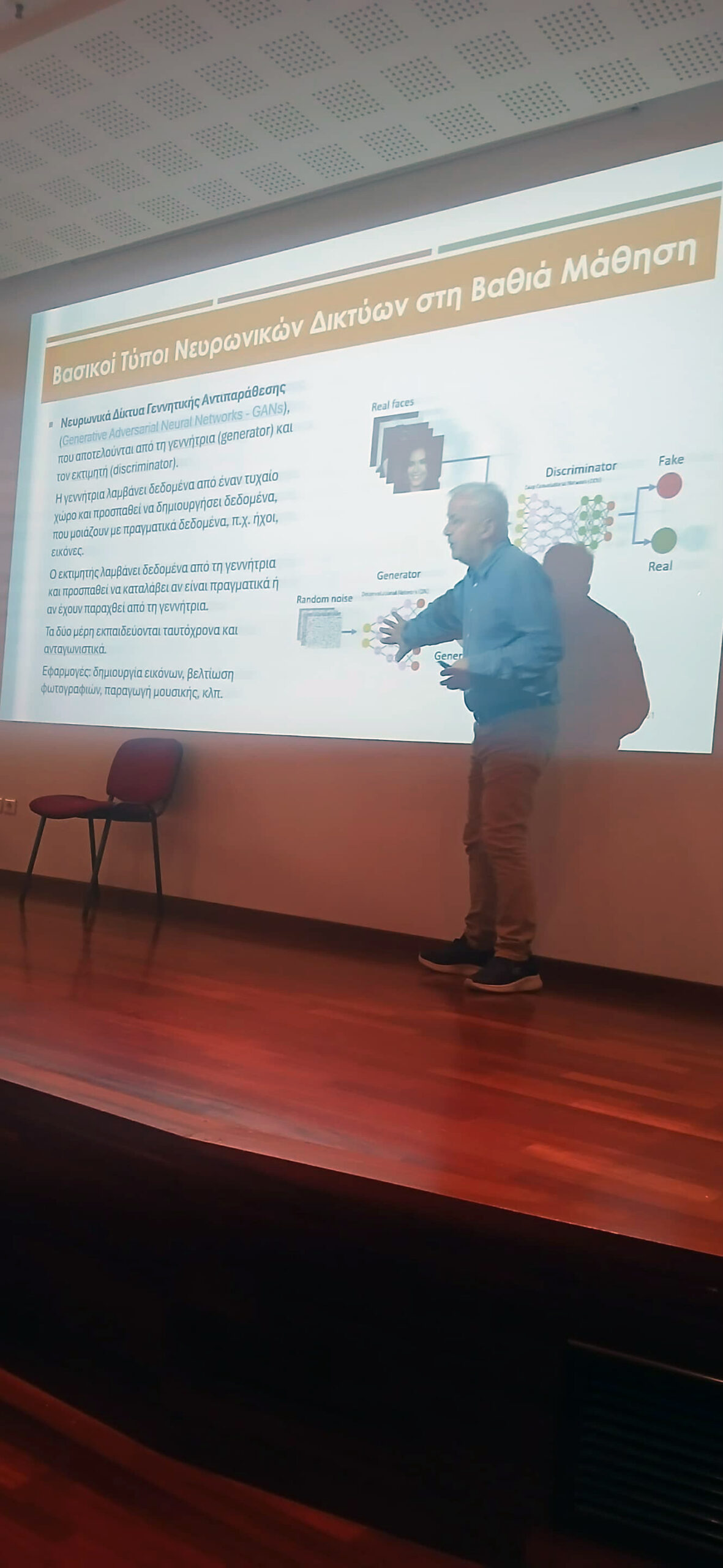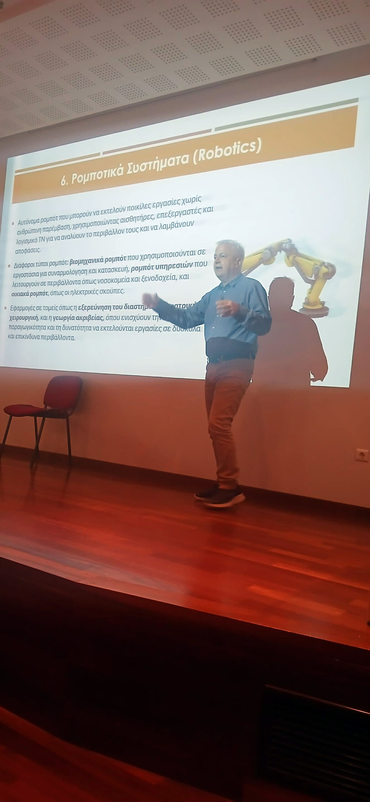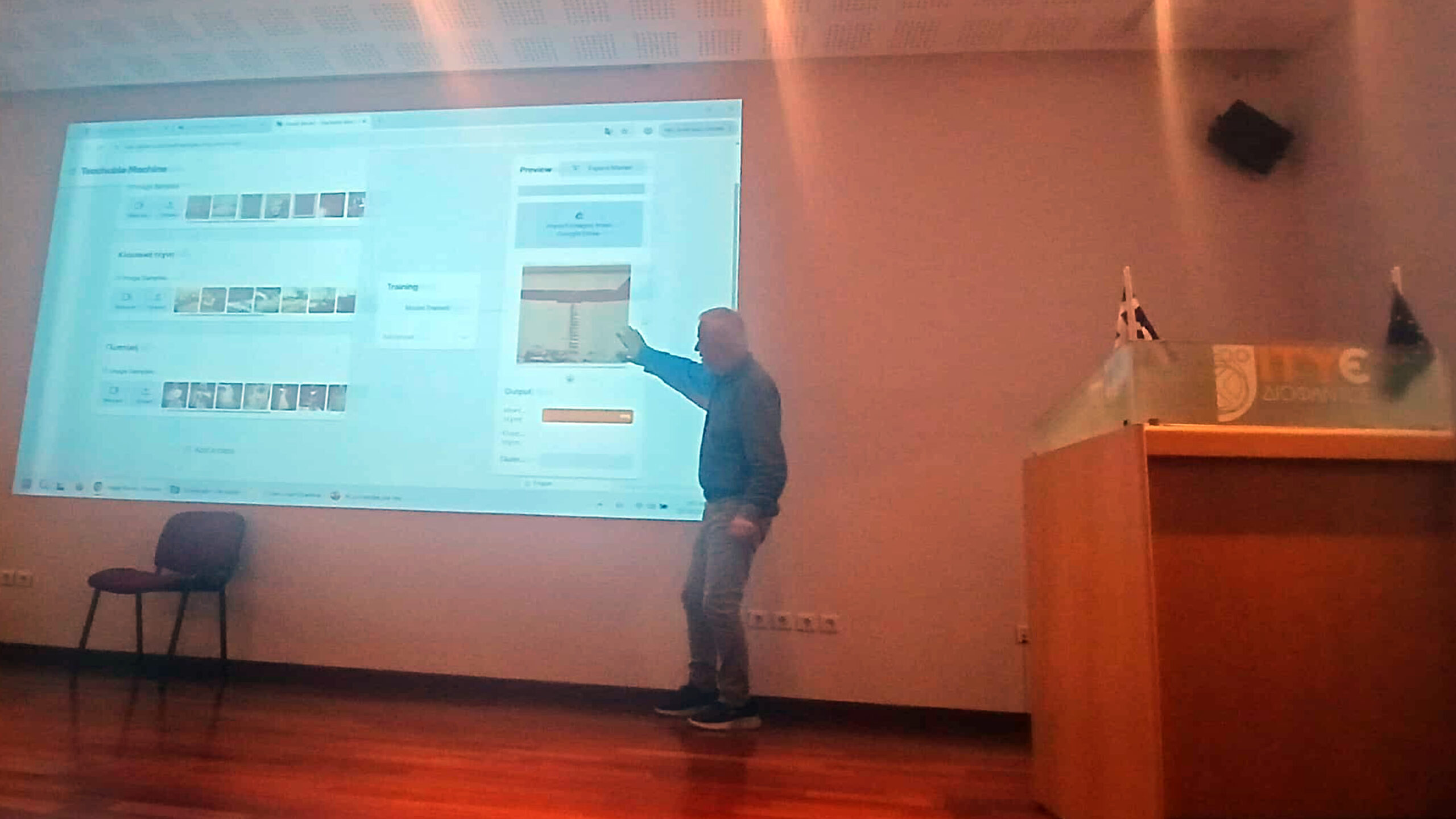 Στη συνέχεια, ο κ.Μ. Παρασκευάς εισήγαγε τους μαθητές/τριες στις βασικές έννοιες της τεχνητής νοημοσύνης, ενώ η παρουσίασή του έκλεισε δυναμικά μέσω του παιχνιδιού γνώσεων kahoot! με την ενεργητική συμμετοχή μαθητών/τριών και εκπαιδευτικών.